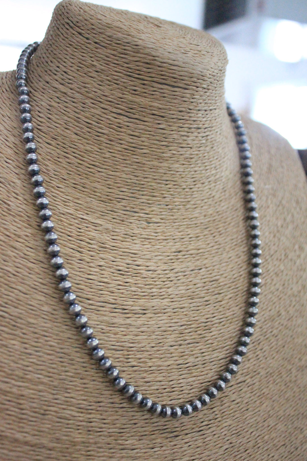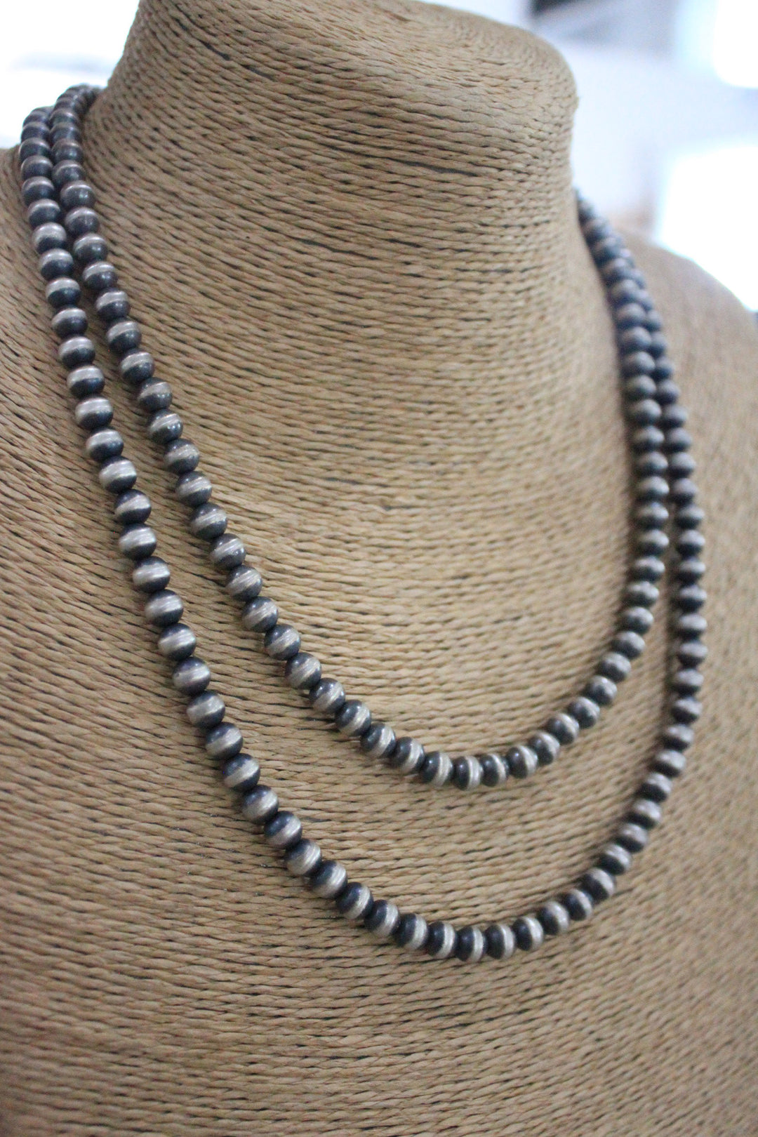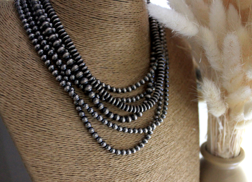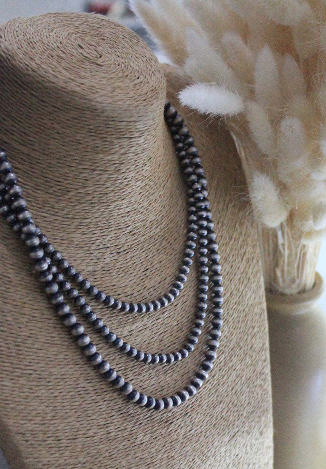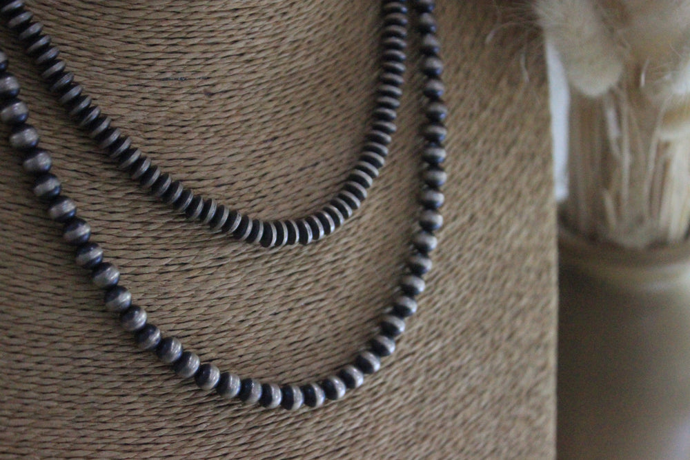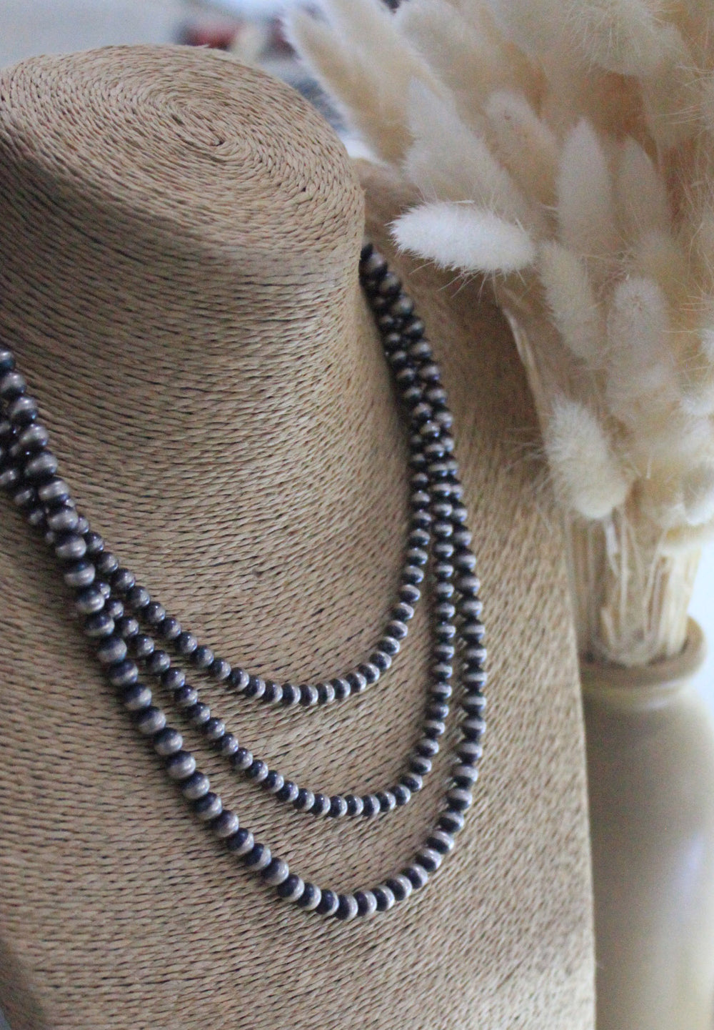 Saddle up in style with the Desert Pearls Collection—sterling silver western necklaces that capture the untamed beauty of the Southwest. Hand-strung and brushed to perfection, each necklace features oxidized silver beads that evoke the rugged charm of vintage western jewelry. Whether you're looking for a dainty choker or a bold, statement-long layer, these pieces are made to stack, style, and personalize with your favorite turquoise or custom pendant.