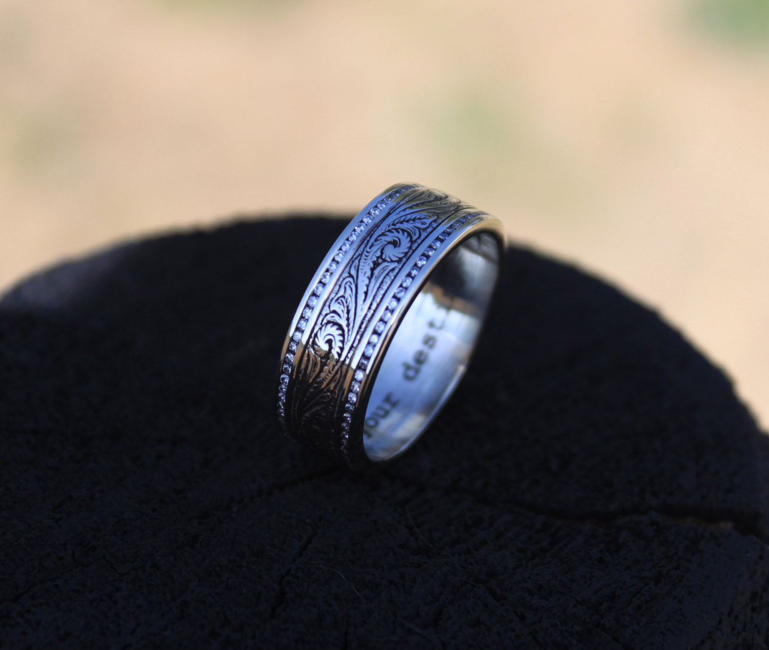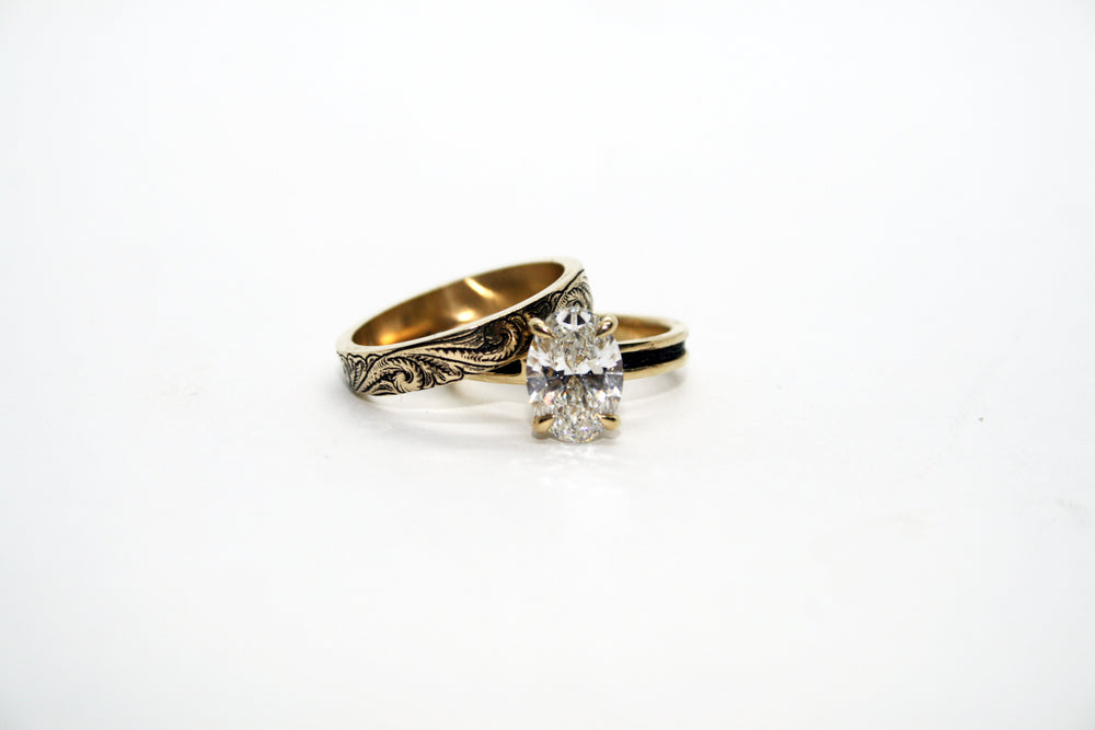 Celebrate your love with handcrafted engagement rings. Hand-tooled details, precious metals, and rustic charm combine for a ring as unique as your own story.