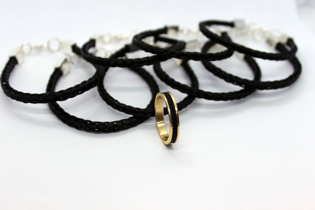 Bracelets and keychains take a fingers thickness of TAIL hair at least 12" in length.